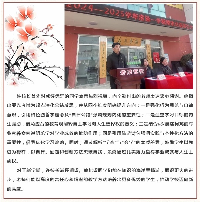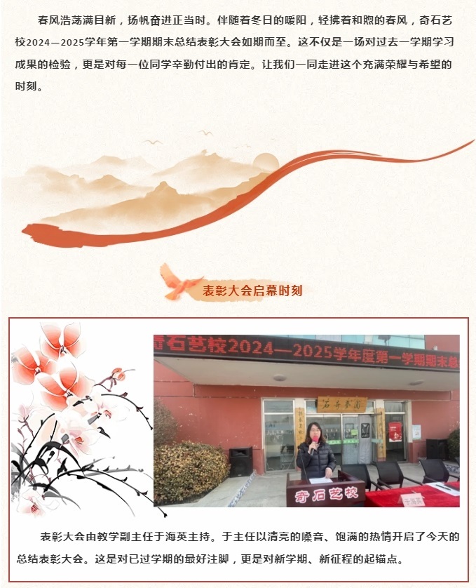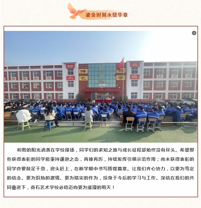 表彰先进树标杆 凝心聚力启新程——奇石艺校2024—2025学年度第一学期期末考试总结表彰大会