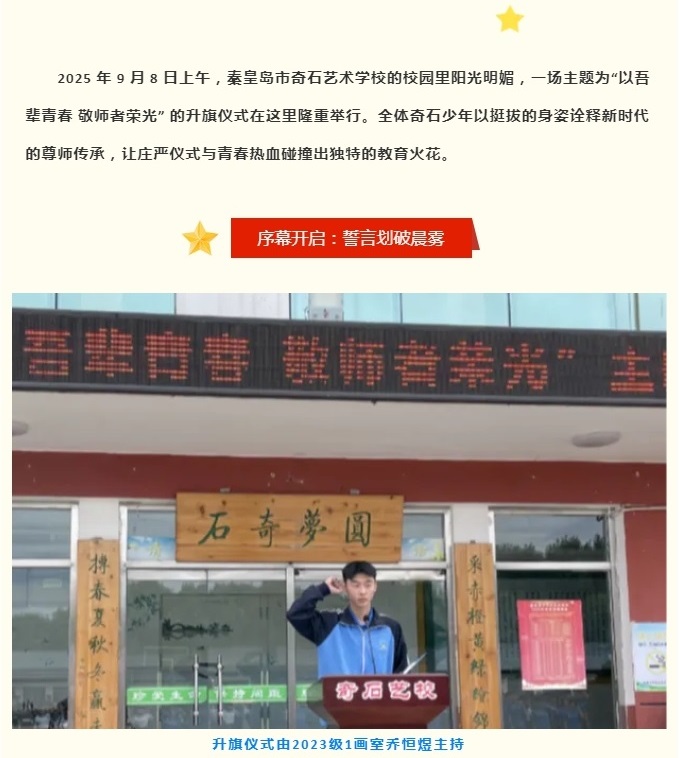 秦皇岛市奇石艺术学校第二周主题升旗仪式