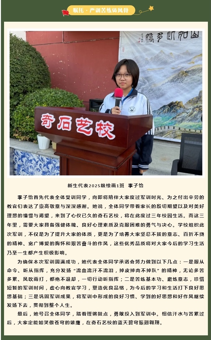 秦皇岛市奇石艺术学校2025级新生军训开营仪式