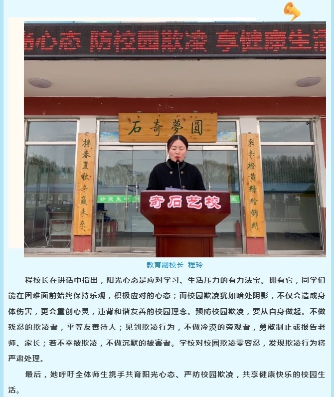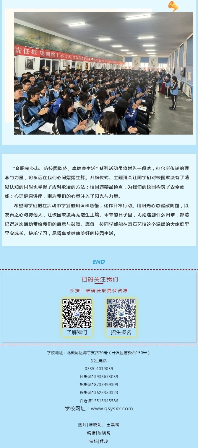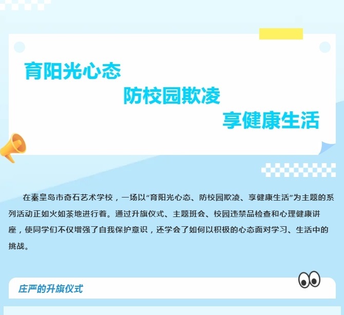 育阳光心态 防校园欺凌 享健康生活——秦皇岛市奇石艺术学校主题教育活动