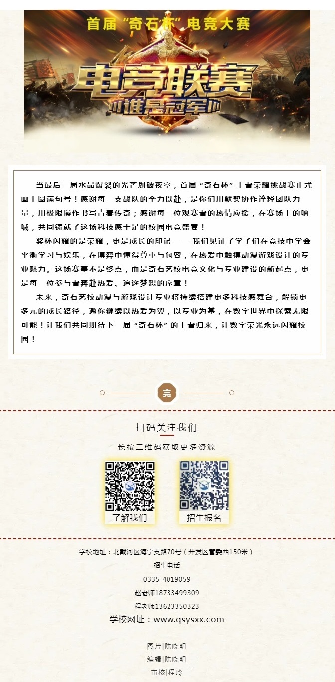 秦皇岛市奇石艺术学校首届“奇石杯”电竞大赛